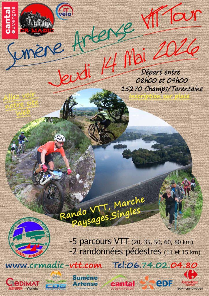 Thursday 14 May 2026, the 21th Sumène Artense MTB Tour takes place in Champs-sur-Tarentaine-Marchal. It takes you on a tour of the lakes of the Artense region.