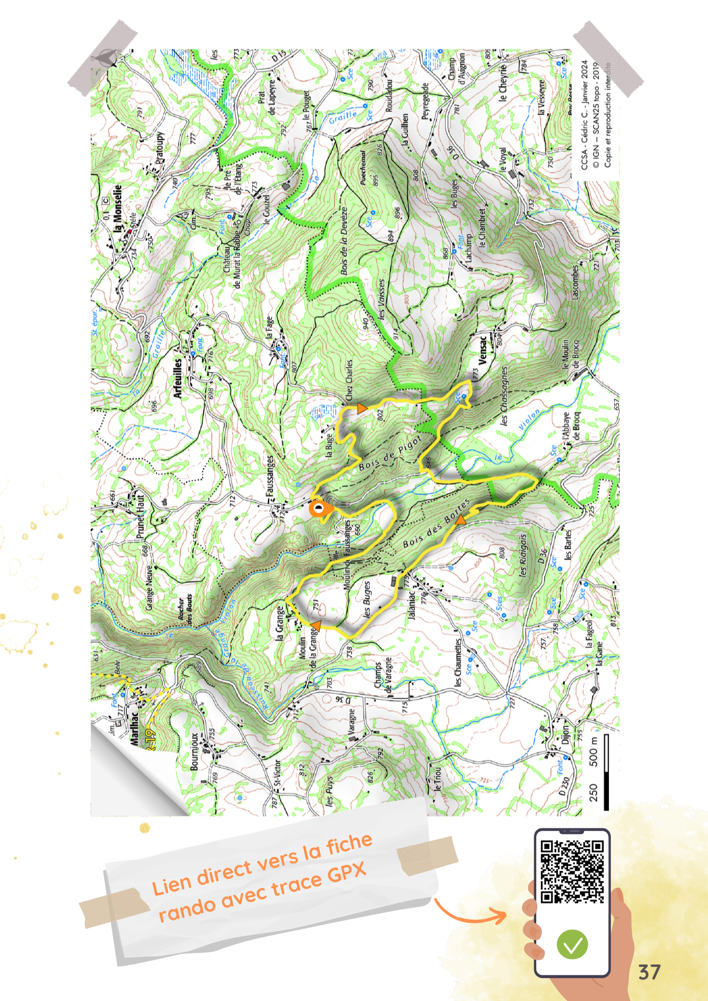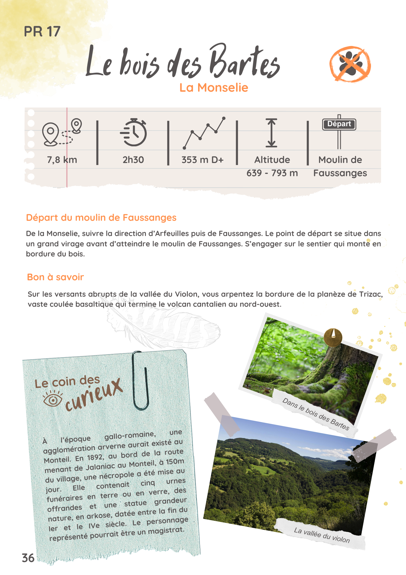 Departure point: Moulin de Faussanges. From Monselie, follow signs for Arfeuilles, then Faussanges. The starting point is in a large bend before reaching the Faussanges mill.